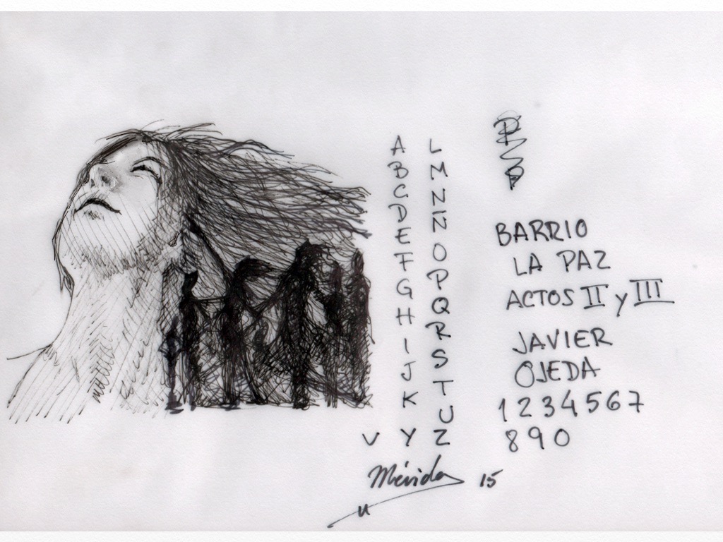 (En la imagen, bocetos de Andrés Mérida para el diseño interior del disco).