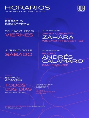 El Mil Festival de Teruel ya está listo para su segunda edición, en la que Andrés Calamaro ejercerá de cabeza de un nutrido cartel en el que también aparecen Zahara, Javier Ojeda (Danza Invisible) o Mucho. Las entradas ya están a la venta a través de la página web www.milfestival.com y en los próximos días podrán encontrarse también en formato físico en distintos puntos de Teruel como el Pub Luvitien, Fundación Amantes y el estanco Los Arcos.