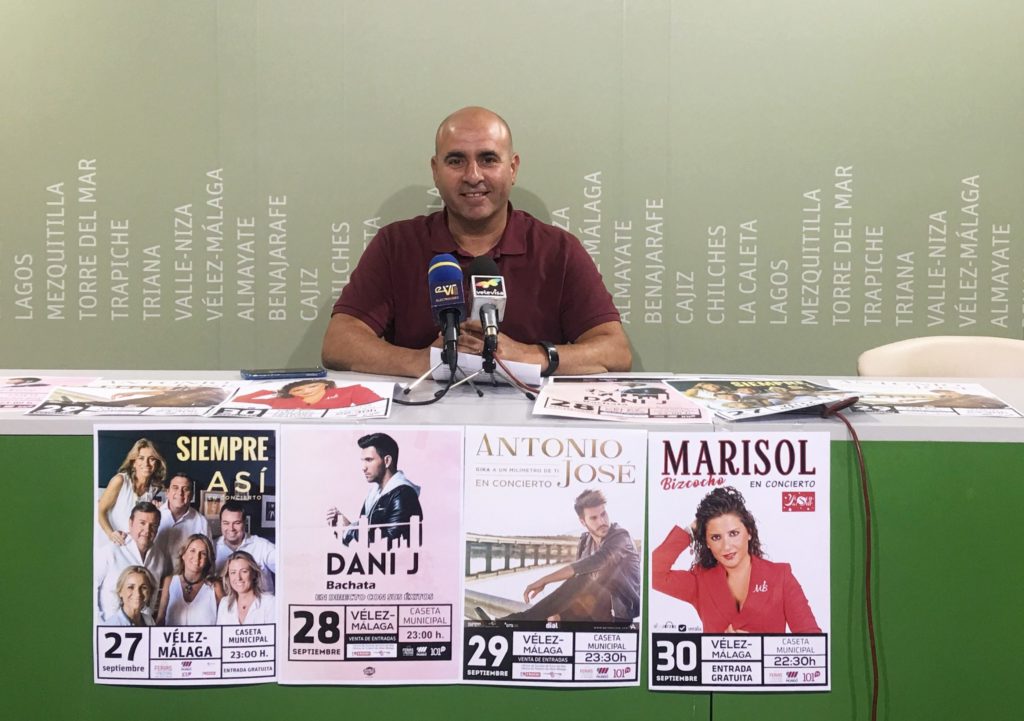 El Ayuntamiento de Vélez-Málaga dio a conocer esta mañana los artistas que componen el cartel de actuaciones de la Real Feria de San Miguel 2018, que se celebra del 25 al 30 de septiembre. La programación consta de veinte conciertos de destacados artistas del panorama nacional, entre los que destacan Antonio José, Siempre Así, Daniel J, Javier Ojeda y Marisol Bizcocho.