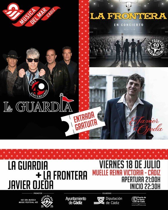 La ‘Música del Mar’ llega gratis a Cádiz, evocando a los ochenta, con La Guardia, La Frontera y Javier Ojeda