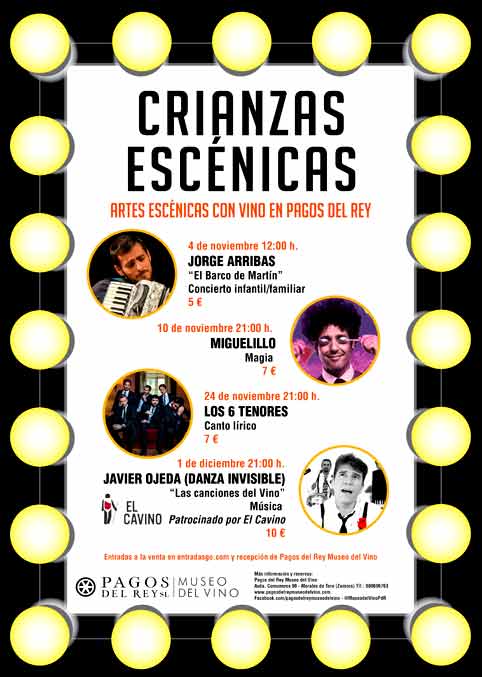 El ciclo «Crianzas Escénicas» será clausurado el 1 de diciembre con el concierto que ofrecerá Javier Ojeda, cantante de la mítica banda del pop español «Danza invisible», quien presentará en el Museo del Vino de Morales de Toro un proyecto personal que lleva por título «Las canciones del vino», espectáculo patrocinado por «El Cavino».