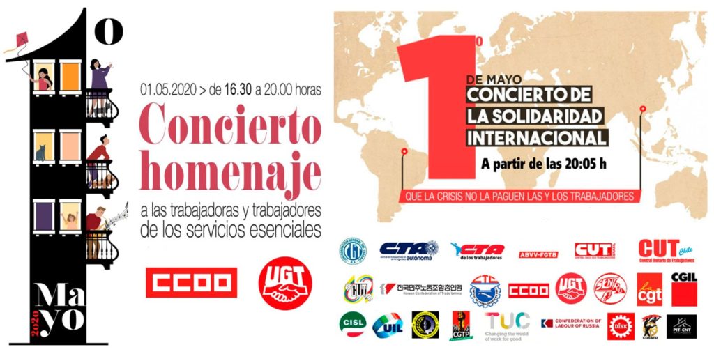 La música pone el punto final del Primero de Mayo de 2020 con la celebración de dos conciertos solidarios que se pueden seguir a través de los canales de Youtube de UGT y CCOO, y las distintas redes sociales.