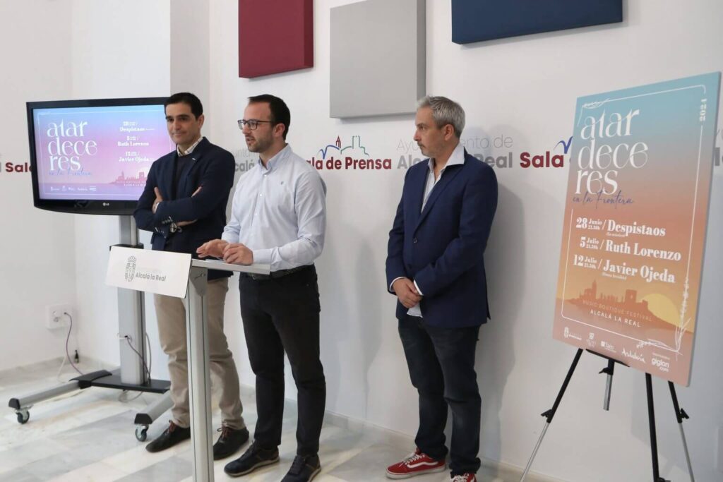 JAÉN.- El alcalde de Alcalá la Real, Marino Aguilera y el concejal de Turismo, Juan Manuel Marchal, han presentado hoy junto a Rafael López, productor artístico del festival, la cuarta edición de Atardeceres en la Frontera, evento que da inicio a la agenda turístico-cultural del verano en Alcalá y que se desarrolla en el marco de la Ruta de los Castillos y las Batallas.