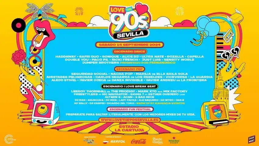 El festival ‘Love the 90’s’ se realizará este sábado 14 de septiembre en el Estadio de La Cartuja