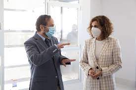 Foto: La portavoz del Gobierno de España y ministra de Hacienda, María Jesús Montero, escucha al director del Centro Oceanográfico de Málaga, Jorge Baro