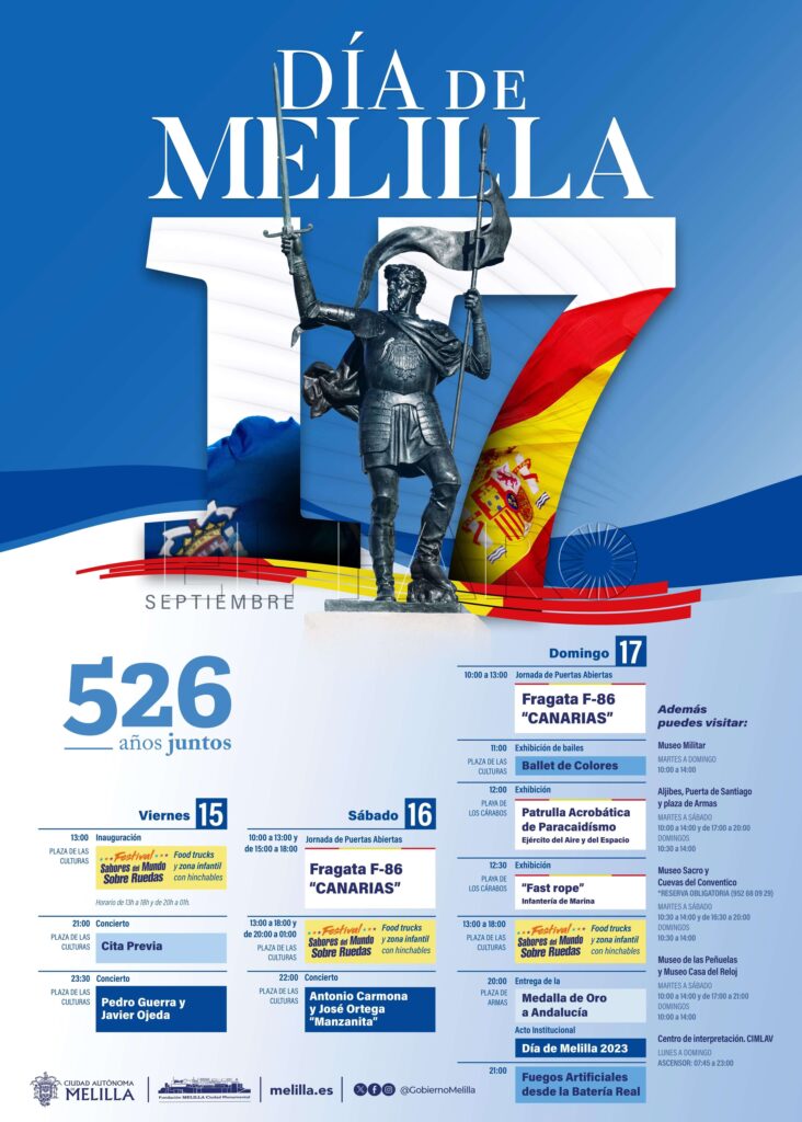 El Día de Melilla viene cargado de numerosas actividades que se desarrollarán desde este viernes hasta el domingo para celebrar los 526 años de la españolidad de la ciudad. El presidente de Melilla Monumental, Francisco Díaz, anunció la programación de esta fecha tan señalada para los melillenses en rueda de prensa esta mañana. Entre los eventos destacan un festival gastronómico con sabores del mundo, exhibiciones de distintas unidades del Ejército, actuaciones musicales y el acto institucional en el que se entregará la Medalla de Oro de la Ciudad a Andalucía.