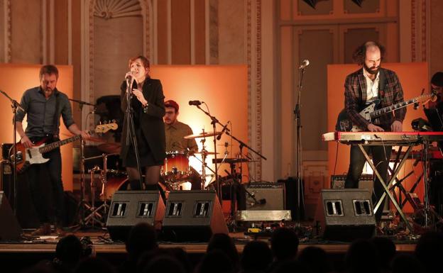 Anoche cobraba más sentido que nunca el concepto ‘alternativo’ para referirse un concierto de este tipo, pues para llegar a la sala había que hacerse paso a contracorriente entre cientos de personas que se concentraban en la calle Carretería para ver alguno de los traslados previos a la Semana Santa. Una vez a salvo del bullicio, el oasis de la preciosa sala, que el público ‘indie’ tiene pocas oportunidades de disfrutar. Los primeros en subirse al escenario, iluminado con una potente luz roja, fueron los cinco componentes de Tulsa, con Miren Iza al frente vestida completamente de negro.