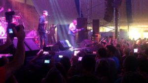 Javier Ojeda, durante el concierto. El grupo, que celebró sus 35 años de carrera sobre el escenario, protagonista en el primer sábado de feria Anoche
