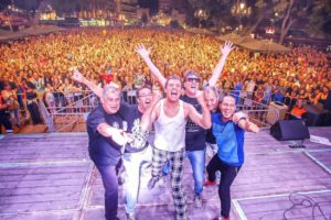Durante aproximadamente una hora, miles de personas calentaban motores en la Plaza de la Nogalera al ritmo de la más que brillante actuación del grupo