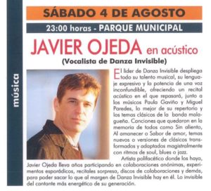 Éxito el pasado sábado del concierto de Javier Ojeda, vocalista del grupo Danza Invisible, que actuó en el parque municipal en un acto incluido en