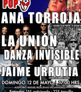 El domingo 12 de mayo tenemos una cita en Rivas Vaciamadrid, Madrid, con Ana Torroja (cantando temas propios y de Mecano), La Unión, Danza Invisible y el que fuera cantante de Gabinete