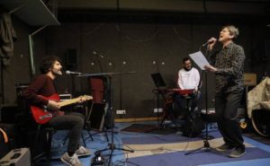 Foto: Miguel Rivera y Javier Ojeda, junto al teclista Daniel Lozano, en la sala de ensayo de Jarrillo’Lata. Hablan un lenguaje difícil de seguir para