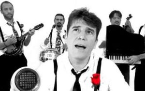 El cantante de la banda «Danza Invisible» clausura con el espectáculo el ciclo «Crianzas escénicas» del Museo del Vino Javier Ojeda, en primer plano, en