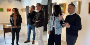 Foto: Fernando Torres (dcha.) explicando durante la visita sus fotografías a Javier Ojeda junto al personal de Cultura. Los títulos de estas imágenes hacen referencia