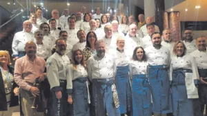 La Cofradía presenta su programa alrededor del típico menú, con la incorporación de 30 nuevos miembros para llegar a los 200 Foto de familia de