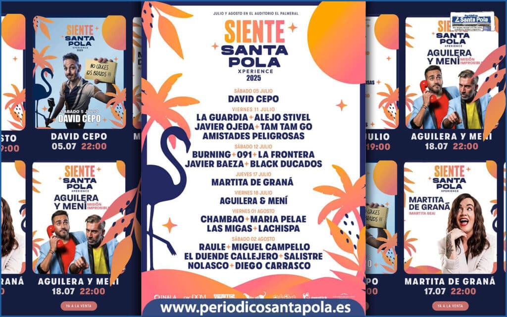 El Auditorio El Palmeral volverá a convertirse este verano en el epicentro cultural de la villa con la segunda edición de “Siente Santa Pola Xperience”, el festival impulsado por la Concejalía de Juventud que la pasada temporada llenó prácticamente todas las butacas en sus noches de monólogos.