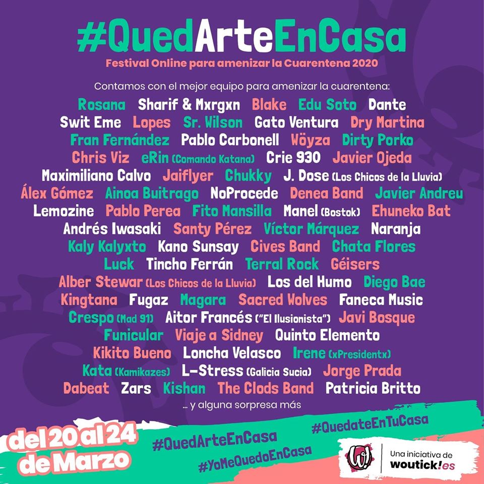 El tercero de ellos, el ‘#QuedArteEnCasa’, tendrá una duración de cinco días dando comienzo mañana viernes 20 de marzo y finalizando el martes 24. Han publicado algunos horarios en su perfil de Instagram.